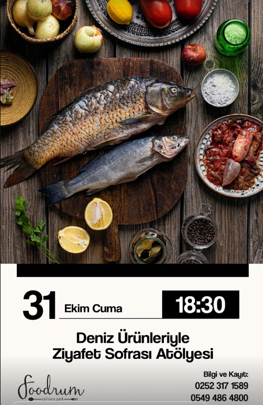 Bodrum’un gastronomi merkezi Foodrum Culinary Park, mutfak meraklılarına taze ve lezzet dolu bir etkinlik daha sunuyor. Bu kez menüde, Ege ve Akdeniz sofralarının vazgeçilmezi olan deniz ürünleri var.