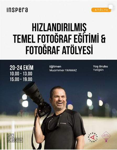 Fotoğraf sanatına ilgi duyan ve kısa sürede yetkinlik kazanmak isteyenler için kaçırılmayacak bir fırsat olan bu etkinlik, fotoğrafçılık serüvenine hızlı bir başlangıç yapmak isteyenler için ideal bir kapı açıyor. Detaylı bilgi ve kayıt için İNSPEPA ve Art Academy’nin iletişim kanallarının takip edilmesi öneriliyor.