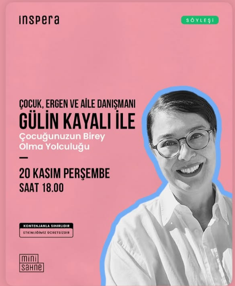 • Konuşmacı: Gülin Kayalı (Çocuk, Ergen ve Aile Danışmanı)