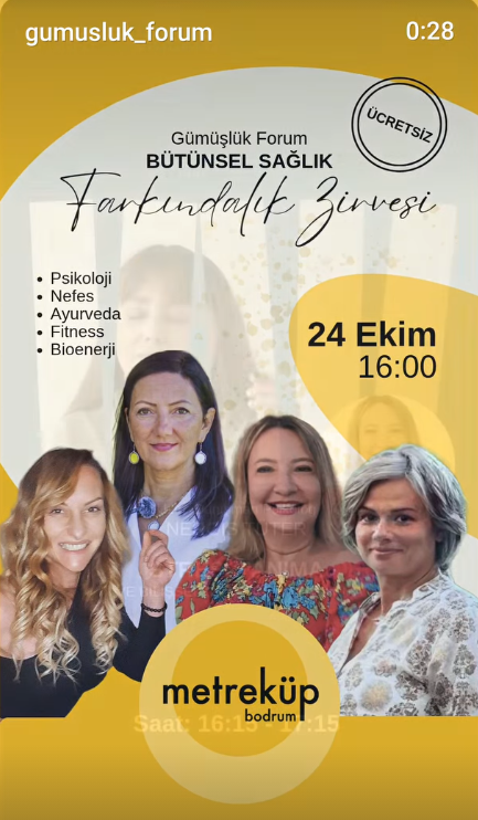 Bodrum’un Gümüşlük Forum etkinlikleri kapsamında düzenlenen “Bütünsel Sağlık Farkındalık Zirvesi”, 24 Ekim Perşembe günü saat 16.00’da Metreküp Bodrum’da gerçekleştirilecek. Etkinlik, katılımcılara ücretsiz olarak sunulacak.