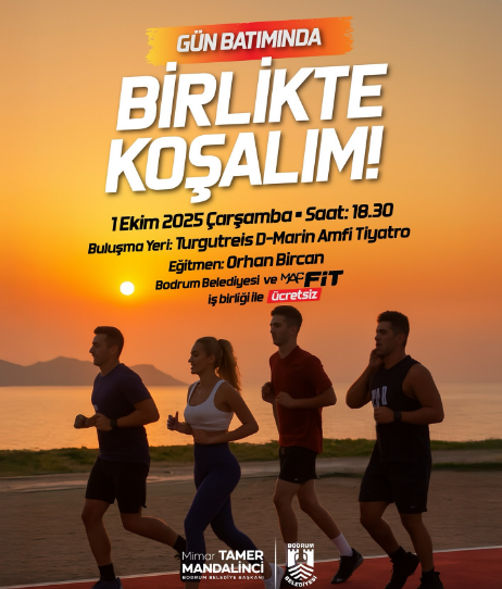 Bodrum Belediyesi, sağlıklı yaşama verdiği önemi bir kez daha göstererek tüm ilçe sakinlerini ve misafirlerini sporla buluşturan ücretsiz bir etkinliğe davet ediyor. Mimar Tamer Mandalinci’nin de desteklediği etkinlik, 1 Ekim 2025 Çarşamba günü gün batımının büyüleyici atmosferinde gerçekleşecek.