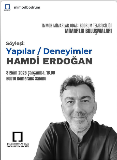 Türk Mühendis ve Mimar Odaları Birliği (TMMOB) Mimarlar Odası Bodrum Temsilciliği, mesleki bilgi paylaşımını teşvik eden “Mimarlık Buluşmaları” etkinlik serisine devam ediyor. Serinin bu ayki konuğu, Mimar Hamdi Erdoğan olacak. Erdoğan, “Yapılar / Deneyimler” başlıklı söyleşide mesleki yaşamından ve önemli projelerinden elde ettiği birikimleri mimarlık camiasıyla paylaşacak.