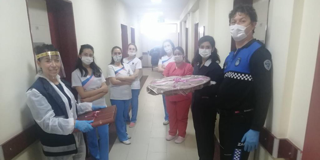 Yeni tip korona virüs (Covid-19) salgını ile mücadelede ön safta yer alarak amansız mücadele eden ve tüm kesimin taktirini kazanan hemşirelerin 12 Mayıs Hemşireler Günü unutulmadı.75. yıl Milas Devlet ve İzan Hastaneleri,Aile hekimlikleri,İlçe sağlık ,Toplum sağlığı merkezleri ve tüm sağlık kuruluşlarında görevli Hemşireleri ziyaret eden ve Milas Belediye Başkanı Muhammet Tokat’ın selamın ileten Zabıta ve Kültür Sosyal İşler Müdürlüğü personeli “Hemşireler gününüzü kutluyoruz. İyi ki varsınız. Bu sıkıntılı günlerde varlığınız bize güç veriyor” dedi.