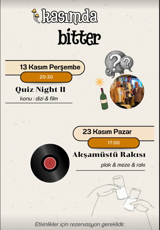 Kasım Ayı Eğlenceleri Bitter Bodrum’da: Quiz Gece ve Plak & Rakı Keyfi!
