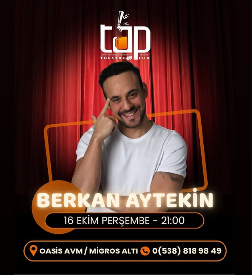 Mizahseverlerin merakla beklediği gösteri, 16 Ekim Perşembe günü saat 21:00’de başlayacak. Gitarı ve hazırcevap sahne enerjisiyle bilinen Berkan Aytekin, izleyicilerine interaktif ve unutulmaz bir akşam yaşatmaya hazırlanıyor.