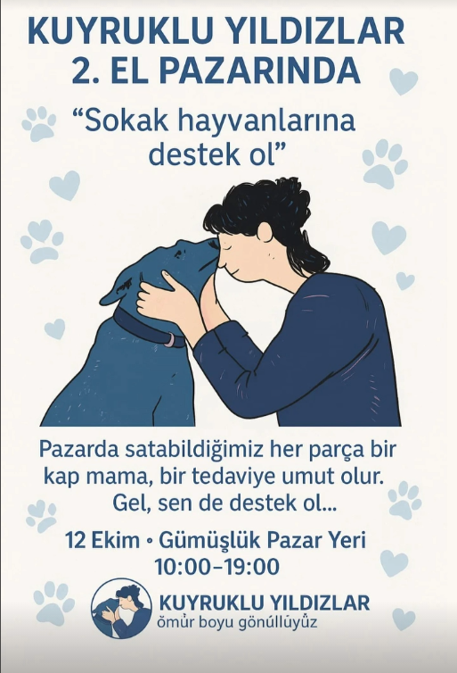 Gümüşlük Pazar Yeri, 12 Ekim’de ‘Kuyruklu Yıldızlar 2. El Pazarı’na ev sahipliği yaparak sokak hayvanlarına destek olmayı amaçlıyor. Elde edilecek gelir mama ve tedavi giderleri için kullanılacak.