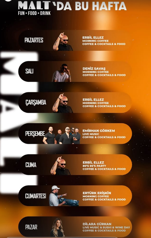 • Salı (2 Aralık): Deniz Savaş, Morning Coffee ve akşam konseptiyle MALTA sahnesinde olacak.