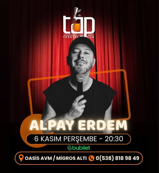 Karikatürle başladığı mizah yolculuğunda stand-up sahnelerinin aranan isimlerinden biri haline gelen Alpay Erdem, gösterilerinde başından geçen ilginç ve komik olayları, keskin gözlem yeteneğiyle harmanlayarak seyirciye aktarıyor. Kendine has üslubuyla izleyicisini düşündürürken güldürmeyi başaran Erdem’in gösterisi için: “Sinirler itina ile yıpratılırken, gök kubbe kahkahalarla örülüyor” ifadeleri kullanılıyor.