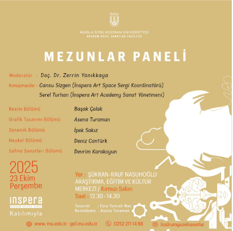 Muğla Sıtkı Koçman Üniversitesi (MSKÜ) Bodrum Güzel Sanatlar Fakültesi, mezunlarını ve öğrencilerini sanat dünyasının güncel konuları etrafında bir araya getirecek önemli bir etkinliğe ev sahipliği yapıyor. Fakültenin Mezunlar Paneli, 23 Ekim 2025 Perşembe günü sanat kariyerlerine ışık tutacak.
