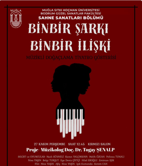 Muğla Sıtkı Koçman Üniversitesi (MSKÜ) Bodrum Güzel Sanatlar Fakültesi Sahne Sanatları Bölümü, sanatseverleri müzikle tiyatronun buluştuğu eşsiz bir gösteriye davet ediyor: “Binbir Şarkı Binbir İlişki”.