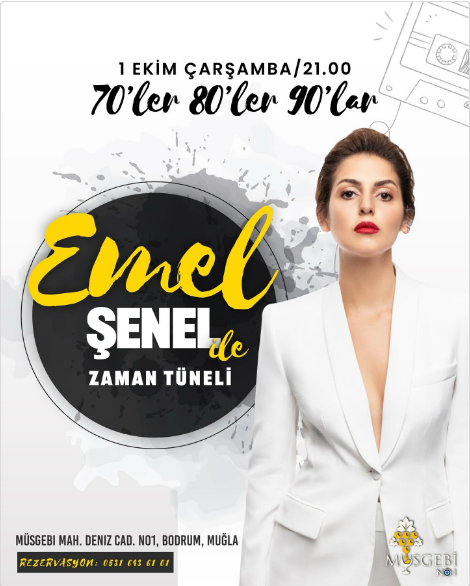 Bodrum gece hayatının keyifli mekanlarından Müsgebi, müzikseverleri unutulmaz bir nostalji yolculuğuna davet ediyor. Sanatçı Emel Şenel, 70’ler, 80’ler ve 90’ların en sevilen şarkılarıyla dinleyicilere adeta bir “Zaman Tüneli” deneyimi yaşatacak.