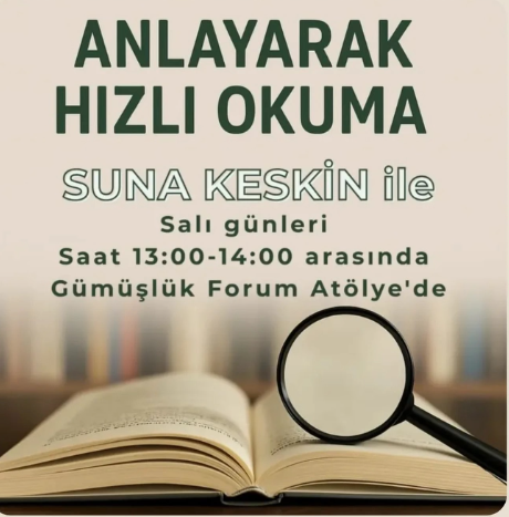 Yoğun bilgi akışının yaşandığı modern çağda, okuma becerilerini geliştirmek isteyenler için Muğla’nın kültür-sanat duraklarından Gümüşlük Forum Atölye önemli bir etkinliğe imza atıyor. Alanında uzman isim Suna Keskin ile “Anlayarak Hızlı Okuma” eğitimi başlıyor.
