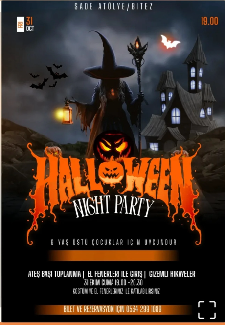 Bilet ve rezervasyon için ilgilenenlerin 0534 299 1089 numaralı telefonu aramaları gerekiyor. Sade Atölye/Bitez, 31 Ekim akşamı çocuklara hem eğlenceli hem de masalsı bir Halloween deneyimi sunmaya hazırlanıyor.