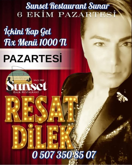 Sunset Balık Restaurant, iddialı bir eğlence programıyla yeni haftaya “merhaba” diyor. Mekan, 6 Ekim Pazartesi akşamı, sahne performanslarıyla tanınan Reşat Dilek‘i hayranlarıyla buluşturacak.
