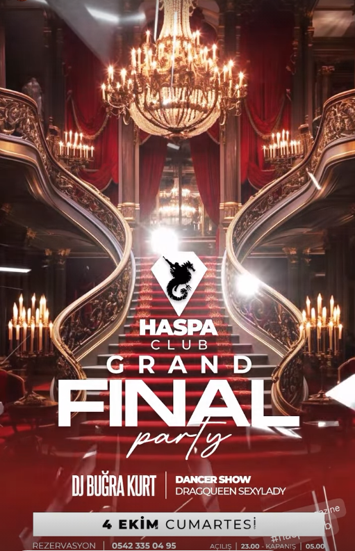 Bodrum eğlence hayatının gözde mekanlarından HASPA CLUB, yaz sezonuna görkemli bir veda için hazırlanıyor. Kulüp, gelenekselleşen “GRAND FINAL PARTY” ile kapılarını son kez açarak misafirlerine unutulmaz bir gece yaşatmayı hedefliyor. Bodrum’un renkli ve enerjik atmosferi, 4 Ekim Cumartesi gecesi zirveye ulaşacak.