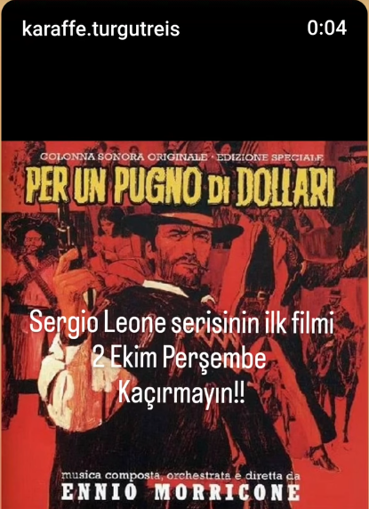 “Sergio Leone serisinin ilk filmi” notuyla yapılan duyuru, ilerleyen günlerde üçlemenin diğer filmleri olan “Birkaç Dolar Daha” ve “İyi, Kötü ve Çirkin”in de gösterilebileceği beklentisini yaratıyor.