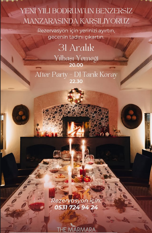 Bodrum’un eşsiz manzarasını ayaklar altına seren The Marmara Bodrum, 2026 yılına görkemli bir başlangıç yapmak isteyenler için hazırlıklarını tamamladı. Şehrin kalbinde, şıklık ve eğlencenin buluştuğu otel; özel yılbaşı menüsü ve DJ Tarık Koray’ın performansı ile misafirlerine rüya gibi bir gece vadediyor.