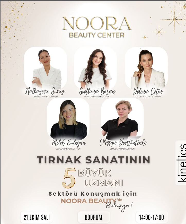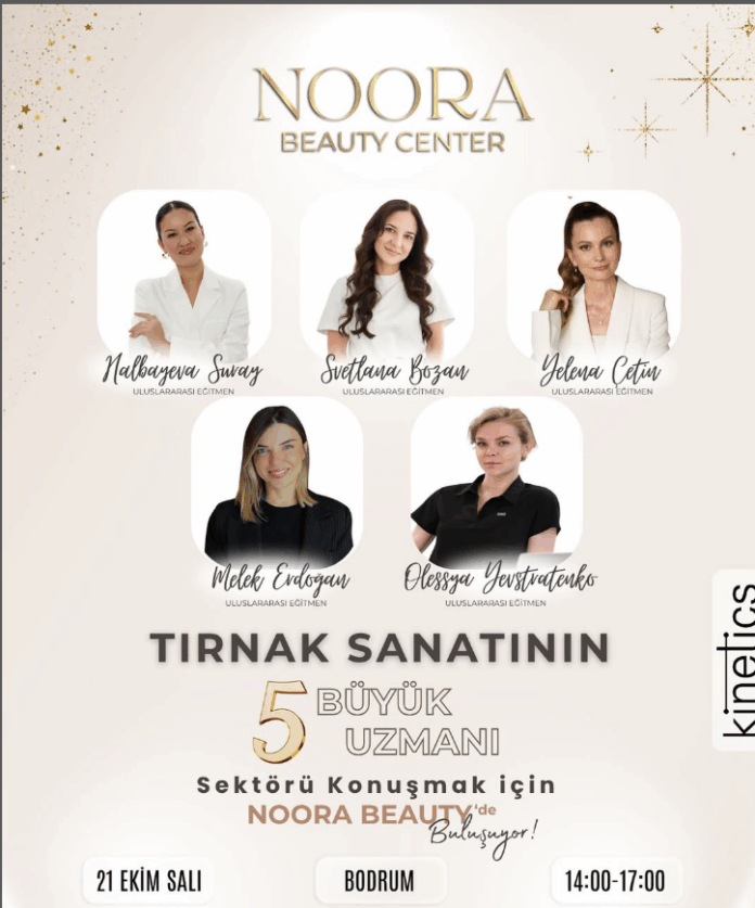 Güzellik ve tırnak sanatları sektörünün önde gelen isimleri, tecrübe ve bilgilerini paylaşmak üzere Bodrum’da bir araya geliyor. Noora Beauty Center, “Tırnak Sanatının 5 Büyük Uzmanı”nı ağırlayacağı özel bir etkinlik düzenliyor.