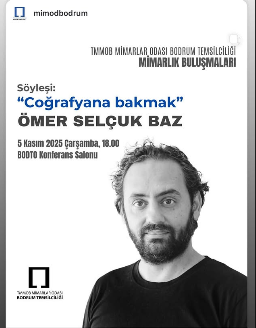Türk Mimarların önemli isimlerinden Ömer Selçuk Baz, TMMOB Mimarlar Odası Bodrum Temsilciliği’nin düzenlediği “Mimarlık Buluşmaları” serisi kapsamında Bodrum’a geliyor. Baz, mimarlık camiasının ve ilgililerin merakla beklediği “Coğrafyana Bakmak” başlıklı söyleşisiyle dinleyicilerle buluşacak.