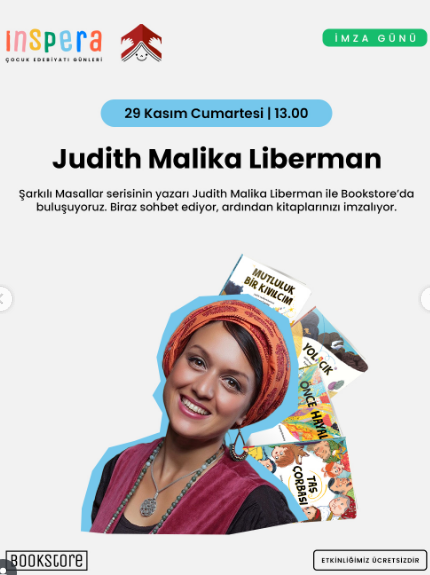 Görselde net bir şekilde belirtildiği üzere, Judith Malika Liberman İmza Günü etkinliğine katılım ücretsizdir. Ancak yerel kısıtlamalar nedeniyle kontenjanın hızlıca dolabileceği unutulmamalıdır. Edebiyatseverlerin, sohbet ve imza için saat 13.00’ten önce Bookstore’da hazır bulunmaları tavsiye edilir.