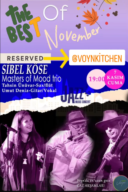 Bodrum’un caz sahnesine getirdiği yeniliklerle adından söz ettiren Voyn Kitchen, Kasım ayının en özel etkinliklerinden birine hazırlanıyor. Mekan, 7 Kasım Cuma günü, cazın usta ismi Sibel Köse ve kurucusu olduğu **”Masters of Mood Trio”**yu ağırlayacak. Etkinlik, Voyn’da “en uzun gece caz akşamları” serisinin bir parçası olarak gerçekleşecek.