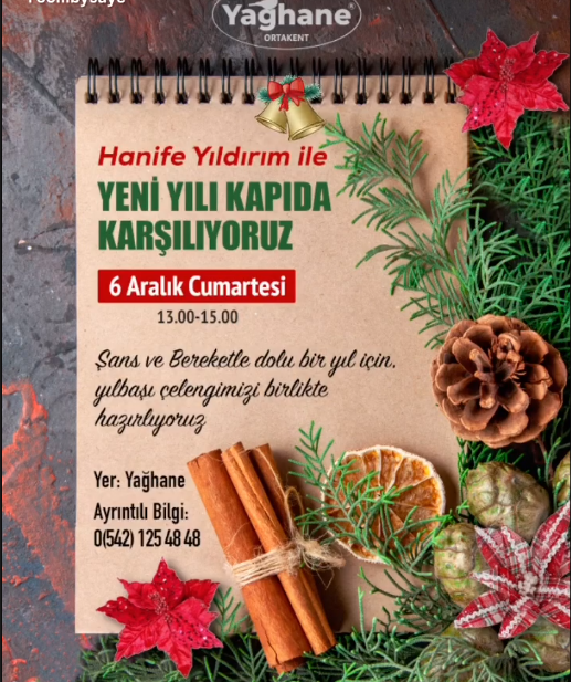 Bodrum’un gözde mekanı Yağhane Ortakent, kış aylarında da etkinlikleriyle adından söz ettiriyor. Yeni yılı şans ve bereketle karşılamak isteyenler için benzersiz bir etkinlik düzenleniyor: Hanife Yıldırım İle Yılbaşı Çelengi Atölyesi! Bodrum’daki yerel etkinliklere ilgi duyanlar ve yaratıcı bir aktivite arayanlar için kaçırılmayacak bu buluşma, yeni yıl coşkusunu erkenden yaşatacak.